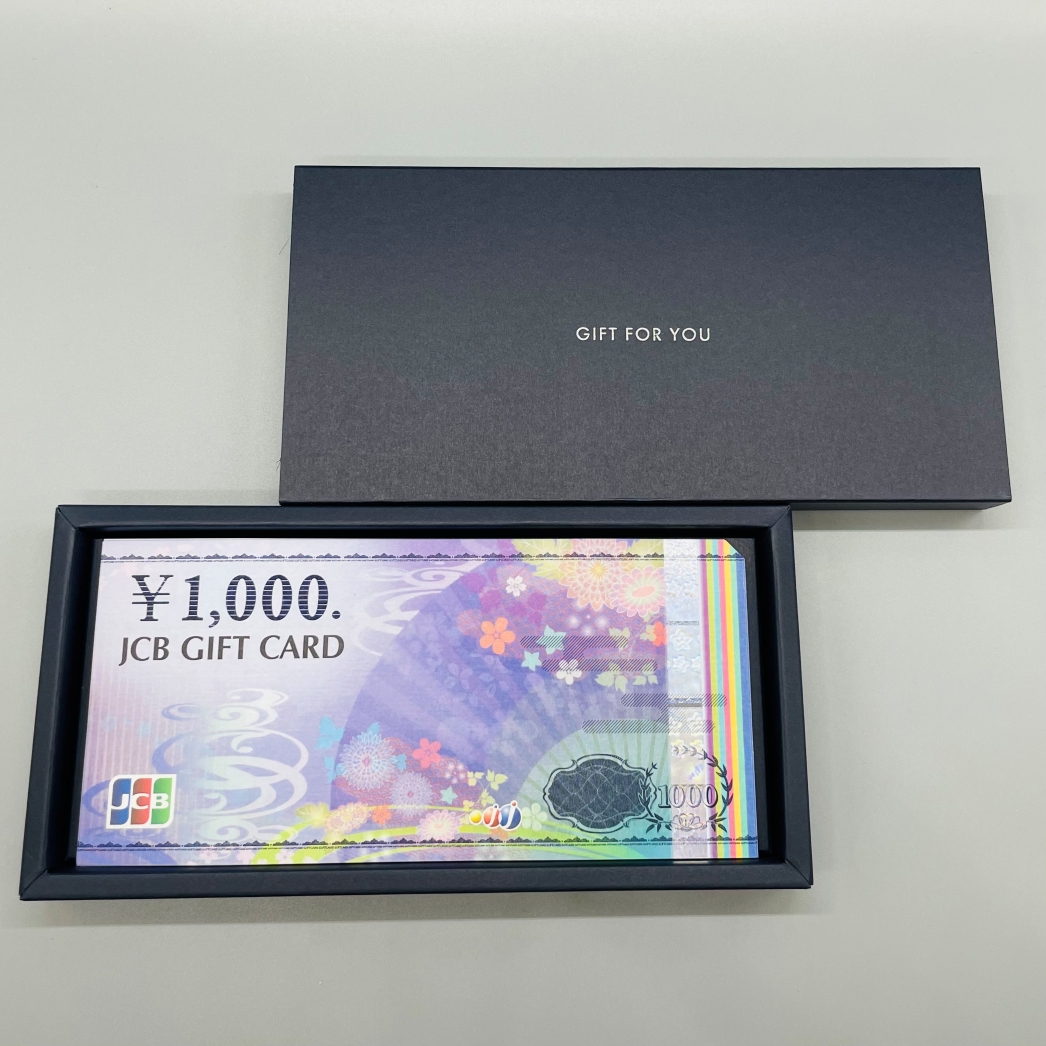 注文画面にて包装紙、熨斗またはリボンシールの有無をお選びいただけます。 ※11個以上から有料 ラッピングの詳細についてはこちら 包装紙の指定がない場合はギフトボックスにお入れするのみでご用意致します。 【ラッピング例】 【熨斗掛け例】 [サイズ] 底箱内寸 幅170×奥行78×高さ15mm 外寸 幅184×奥行92×高さ19mm [箱の重さ] 1個あたり 約27g [紙の厚み] 約0.41mm [フタ表面] 箔押し加工 【注意事項】 ・商品券、カードサイズの商品対応のギフトボックスとなります。 箱の内寸を超える大きさの商品をお入れすることはできません。 ●封入可能商品 商品券、クオカード、図書カード、選べるグルメカード、映画GIFT、ローソン・ユナイテッドシネマギフトカード、KFCカード、選べるおむつカードなど ※一部のギフト券、カタログギフト、体験ギフトなどは対象外となります。 ・ギフトボックスへの複数の封入をご希望の場合、希望のセット数分の箱をご購入ください。 封入枚数の内訳はご購入画面下方、備考欄にご指定をお願い致します。 ご指定がない場合、原則すべてまとめて1セットで封入致します。 ・商品と別々でご用意をご希望の場合は、購入画面の備考欄に記載をお願い致します。