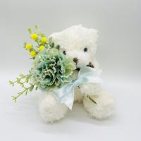 造花を抱いたくまのぬいぐるみを添えてお届けいたします。